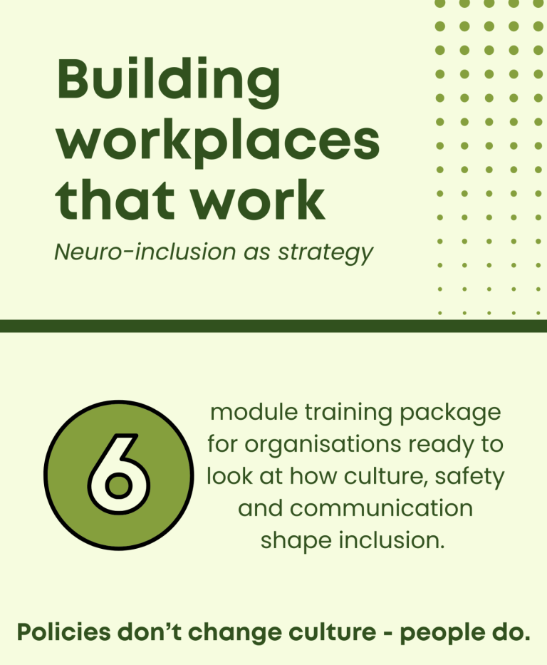 Why does it matter? Because when neurodivergent staff feel safe, supported and heard they do not need to spend their energy surviving the workplace.